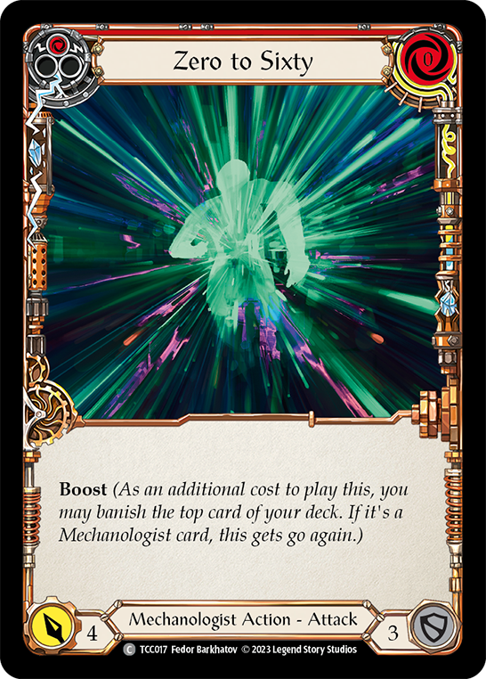 Boost (As an additional cost to play this, you may banish the top card of your deck. If it's a Mechanologist card, this gets go again.)